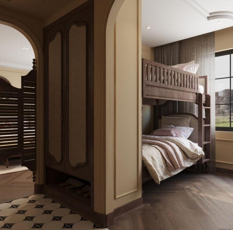 The spacious family room offers air conditioning, soundproof walls, a terrace with garden views as well as a private bathroom boasting a bath.